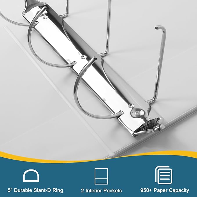 - 5" white binders hold us Letter size 8-1/2" x 11" paper, d ring can hold 950+ paper capcity, 2 packs.