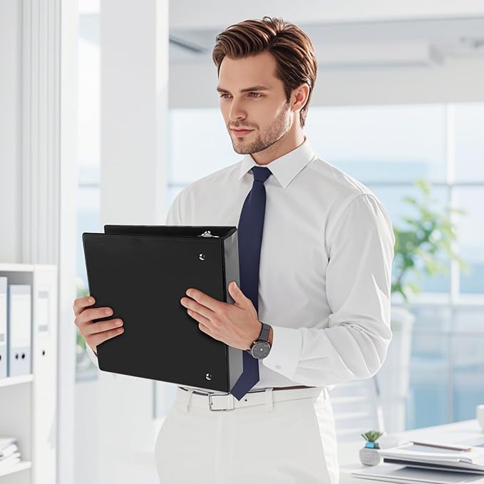 - 3" black binders hold us Letter size 8-1/2" x 11" paper, slant-d ring can hold 725+ paper capcity, 2 packs.