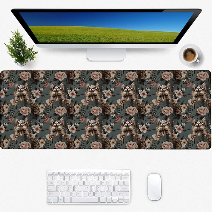 Cat Gaming Mouse Pad, Desk Mat, Non-Slip Rubber Base Cool Aesthetic MousePads for Computer Laptop Keyboard Office School Home Desktop Accessories Decor 31.5" x 11.8"