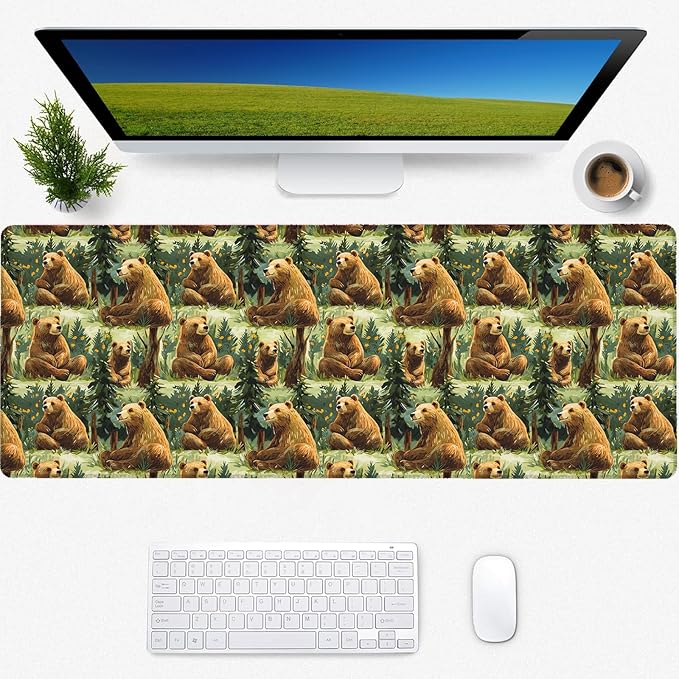 Bear Gaming Mouse Pad, Desk Mat, Non-Slip Rubber Base Cool Aesthetic MousePads for Computer Laptop Keyboard Office School Home Desktop Decor 31.5" x 11.8"