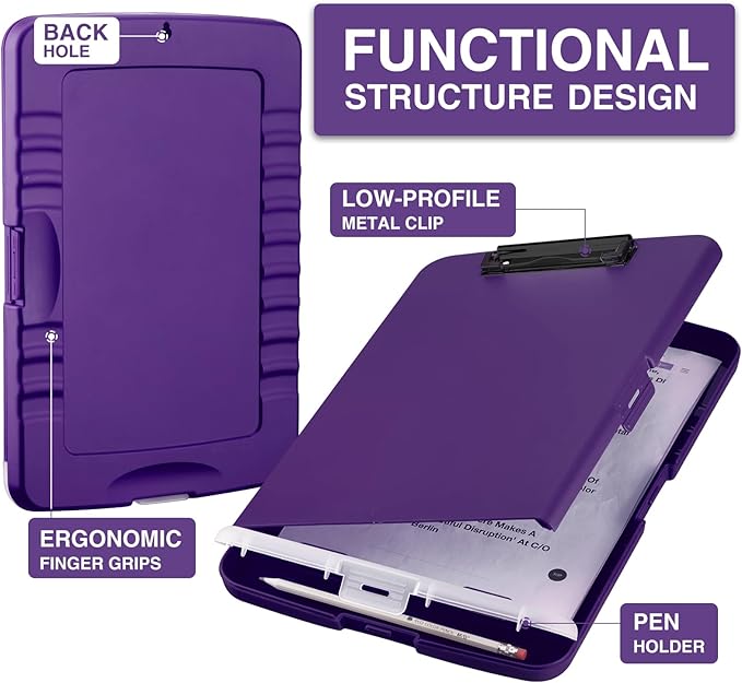 - High Capacity: Equipped with both a paper storage component that holds twice as much paper as other clipboards and a built-in pencil case. The high-capacity medical clipboard can securely hold up more than 200 letter-sized documents and legal pads, and up to 6 pencils.