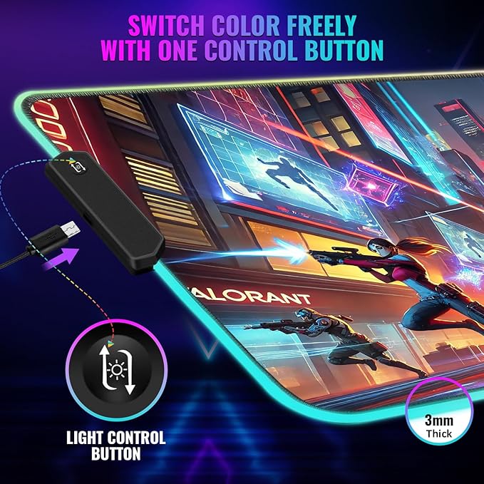 - 【COOL GAMING ACCESSORY】Enhance your gaming or office setup with this stylish and functional mouse pad. The RGB lighting adds a sleek touch, making it a must-have accessory for gamers and professionals alike.