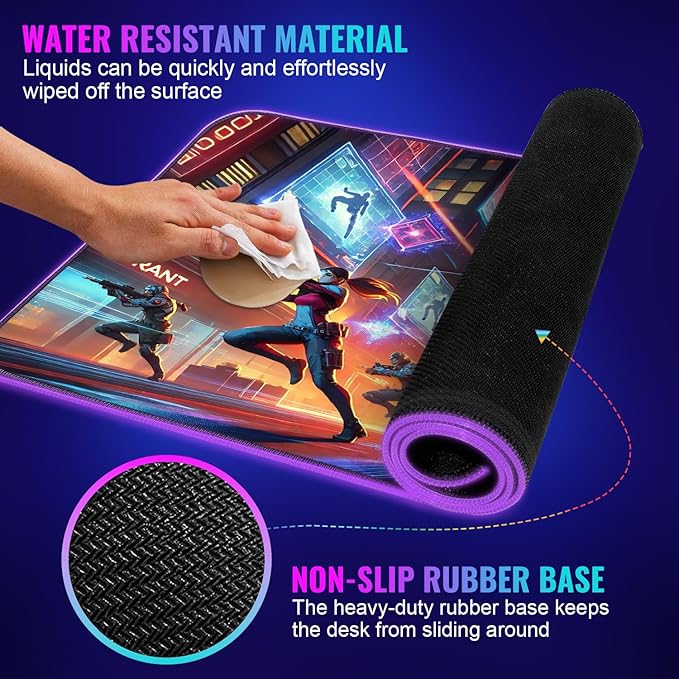 - 【PERFECT FOR GAMERS】This RGB Gaming Mouse Pad is built for gamers who demand both style and performance. Its large size, vibrant lighting, and high-precision surface make it the ultimate desk companion for extended gaming sessions.