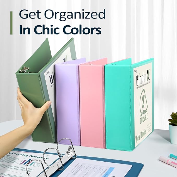 Sooez BinderX Extra Durable 4 Pack 1 Inch 3 Ring Binder, D-Ring Large Binder, Holds 880 Sheets of 8.5x11 Paper, Customizable View Cover with Inside Pocket, Pastel