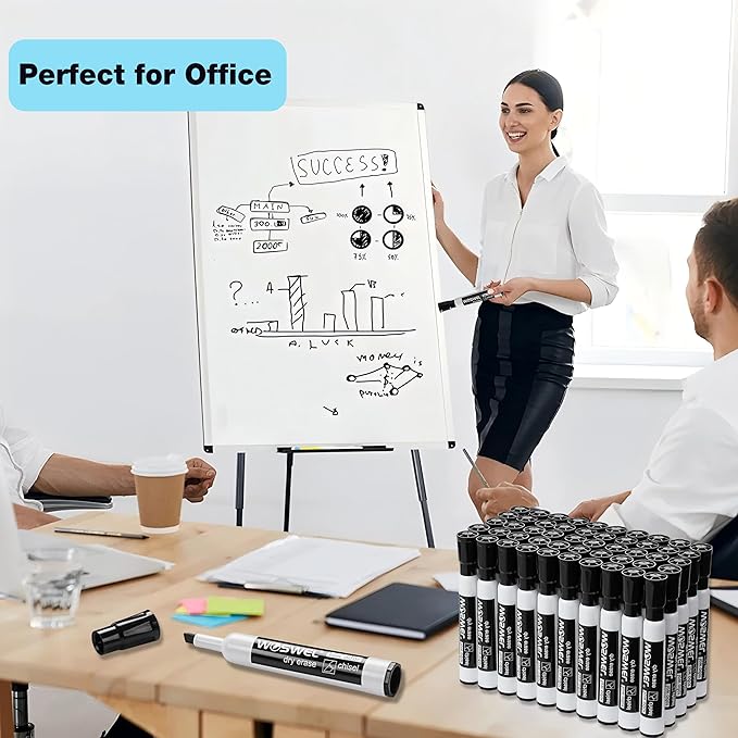 Dry Erase Markers Bulk, Chisel Tip Whiteboard Markers, Low Odor Thick Dry Markers, 50 Black Color for Kids/Teachers, Classroom, Office & Home Use