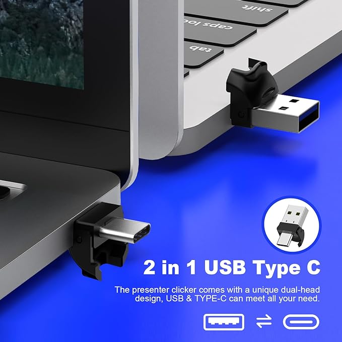 QUI Presentation Clicker for PowerPoint, RF 2.4GHz USB C Wireless Presenter Remote with Volume Control, PowerPoint Clicker Slide Advancer for Mac, Windows, Laptop, Keynote