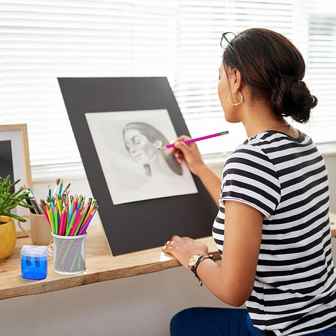 - Colored Pencil Sharpener: the outer shell of our manual double hole pencil sharpener is made of plastic and the inner blade is made of metal material, which allows you to sharpen pencils effectively and quickly