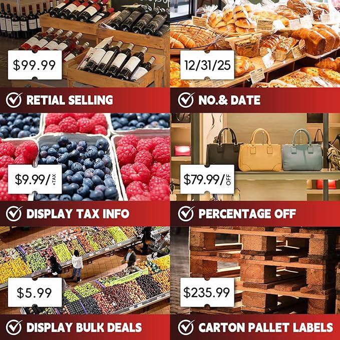 - SUPPORT UNITS: Our price gun support USD currency only and number 0 - 9 meet all the numbers requirement. It also supports multiple units like: Tax, Discount Off, Each, Set, Pair, Foot, LB, Yard, Case, Pkg, Box etc., let you print the price with more accurate price unit. Perfect for anything selling