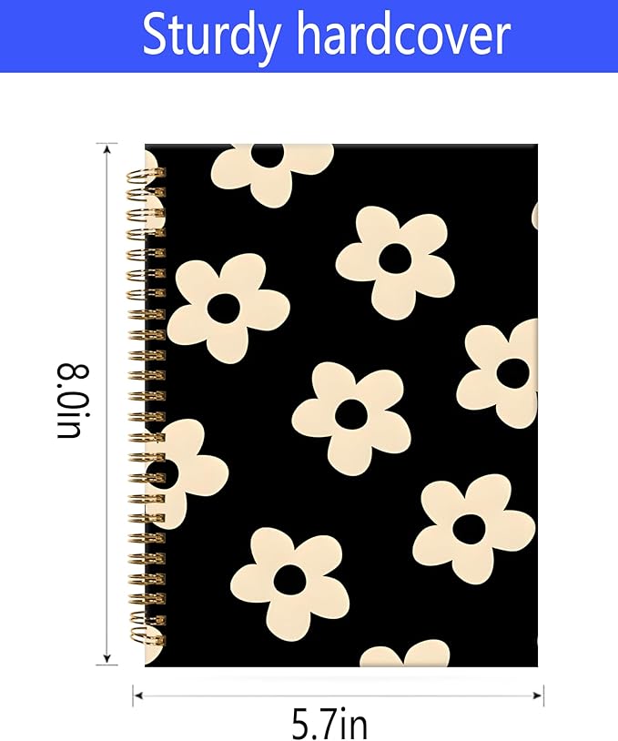 Spiral Journal Notebook,A5 Hardcover Lined Journals for Women Girl 6 x 8.3 in,120 Pages Thick Paper,Cute College Ruled Writing Notebook for Gifts Office Work School(Cute Black Flower)