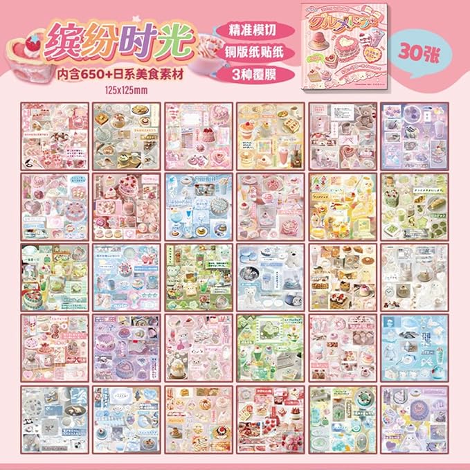 Alideco 30pcs Scrapbook Stickers Vintage Gourmet Desserts Sticker Book for Adults journaling Stickers for Scrapbooking (binfenshiguang)
