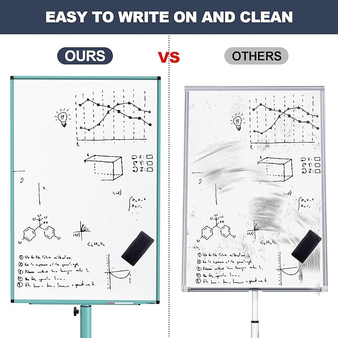 - EXCELLENT QUALITY - The rolling whiteboards have a special coating that makes writing and erasing easy without stains or ghosting. This ensures that our portable whiteboards look great and stay clear for decades.