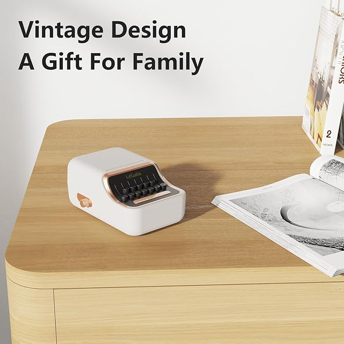 Wireless Mini Retro Label Maker Machine with Tape,Bluetooth Portable Thermal Sticker Printer for Phone,Small Business, Address, Logo, Qr Code, Food,Home, Kitchen,with 50×30mm Label (White)
