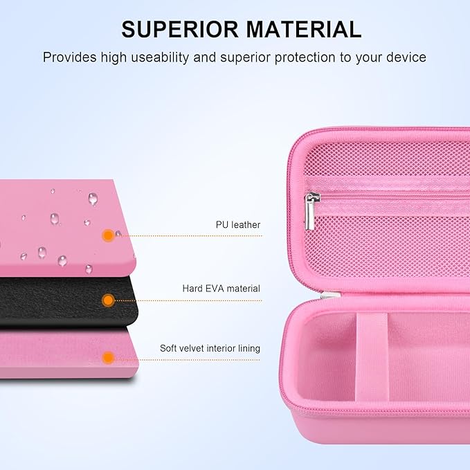 Elonbo Carrying Case for Lebt Mini Sticker Pocket Printer, Label Printer Portable Thermal Printer Travel Bag, Label Maker Machine Storage Holder, Mesh Pocket Fits Label Paper Rolls Tape, Dark Pink