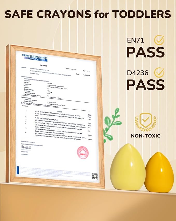 - Non-Toxi & Washable Crayons: Our toddler crayons are made from non-toxic materials and are safety certified. The washable formula allows for easy cleaning with soap and water, so you don't have to worry about your child's hands, clothes, or desk getting dirty