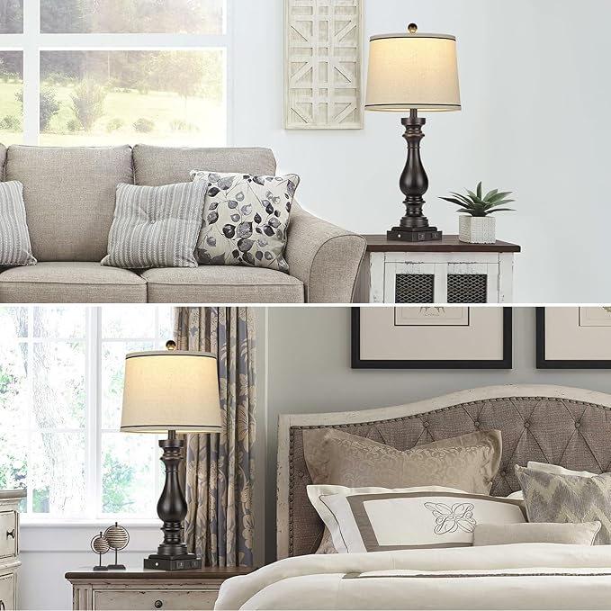 - USB A&C Charging Ports and an AC Outlet:Our Rinweey black lamps come with built-in USB A & USB C (5V/2.1A) charging ports, making it easy to charge your devices right at your nightstand. Additionally, each lamp features a single AC outlet (2-prong), freeing up space on your wall outlets. Whether the lamp is on or off, you can charge your phone, Kindle, headphones, diffuser, speakers, or any other electronic devices, keeping your space clutter-free and organized.