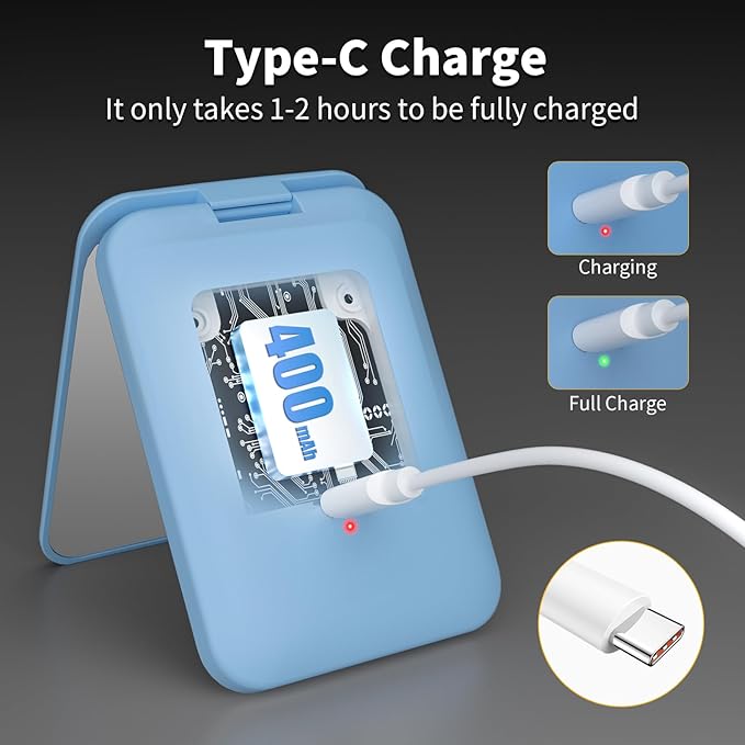 Kintion 2025 Pocket Mirror, Rechargeable Dimmable 3 Color Lighting 1X/3X LED Compact Travel Makeup Mirror for Purse, Portable, Folding, Handheld, Small Lighted Mirror for Women Gift, Blue