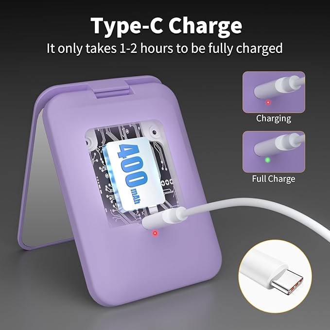 Kintion 2025 Pocket Mirror, Rechargeable Dimmable 3 Color Lighting 1X/3X LED Compact Travel Makeup Mirror for Purse, Portable, Folding, Handheld, Small Lighted Mirror for Women Gift, Purple