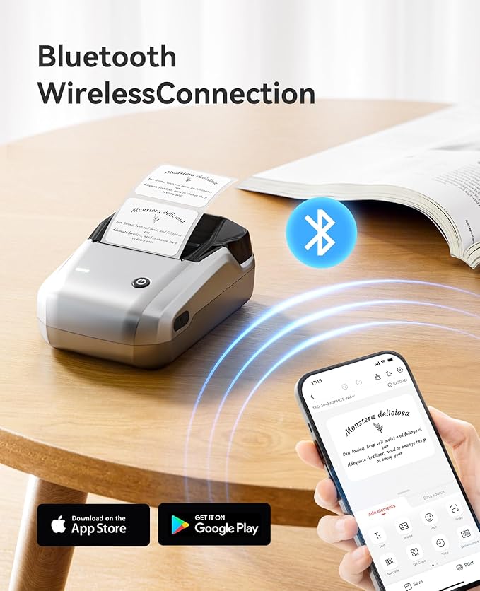 - 【Powerful APP】More than 30 fonts and languages, 100 borders, and 1500 symbols were supported by the app. Auto-identify the size of the label sticker, no need to manually select the template, complete the printing in time and quickly.