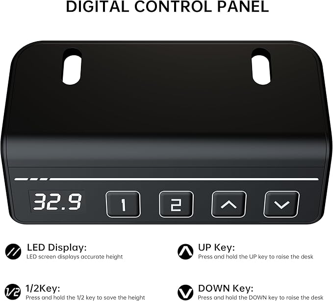- Electric Height Adjustable: The stand up desk features two preset buttons to customize your desired heights from 28" to 46.5".