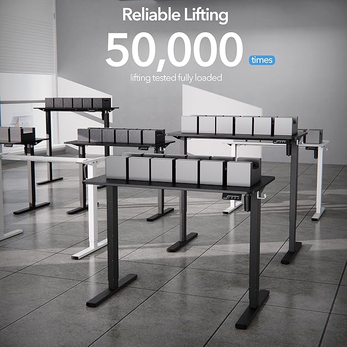 - Outstanding Stability: The electric standing desk has a sturdy solid steel frame with aerospace-grade lifting column connectors (still stable & secure after testing 50,000 times).
