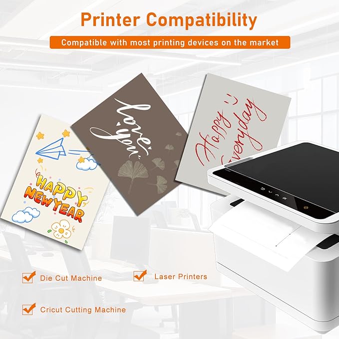 - Printer Compatibility:our thick printer paper card stock is compatible with most types of laser printers, die-cutting machines, and cricut cutting machines. Please ensure that your printer can print on 250gsm before ordering