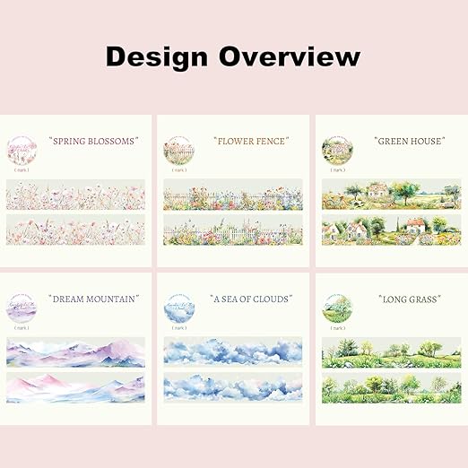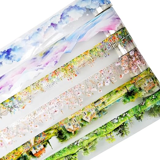 - Enchanting Nature-Inspired Designs: This PET tape set features six seamless, looping nature landscapes, including serene cottages, vibrant flowers, and lush greenery. Ideal for enhancing your scrapbooks, journals, and DIY projects, these tapes bring a tranquil garden aesthetic to your creative endeavors
