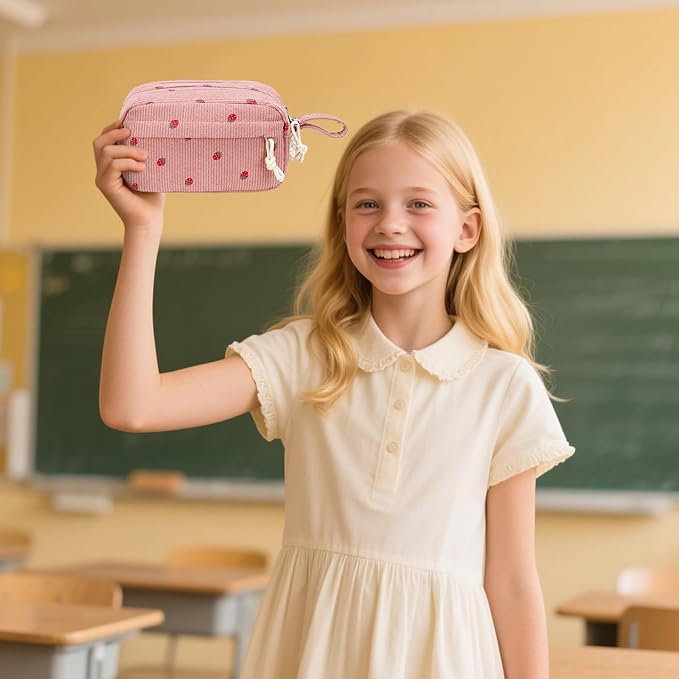 Bluboon Large Capacity Pencil Case Pen Pouch for School Supplies, Teens, Girls, Boys, Women & Men, Durable Multi-Purpose Organizer (Strawberry Pink2)