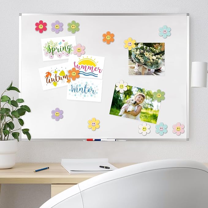 - Made from resin and soft magnets, these smiley flower magnets are sturdy and long-lasting. Even if dropped from a height, they will remain intact, not cracking or fading over time.