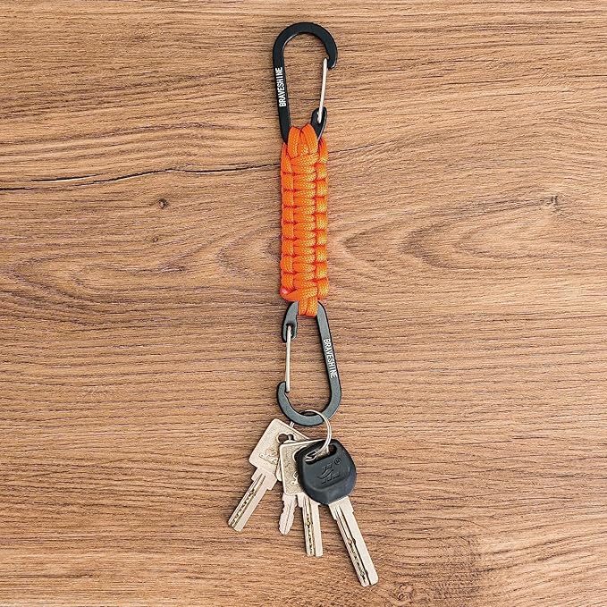 BRAVESHINE Paracord Keychain Carabiner Clip, D Ring Lanyard Hanger Stroller Hook for Water Bottle, Key, Backpacks, Men, Women