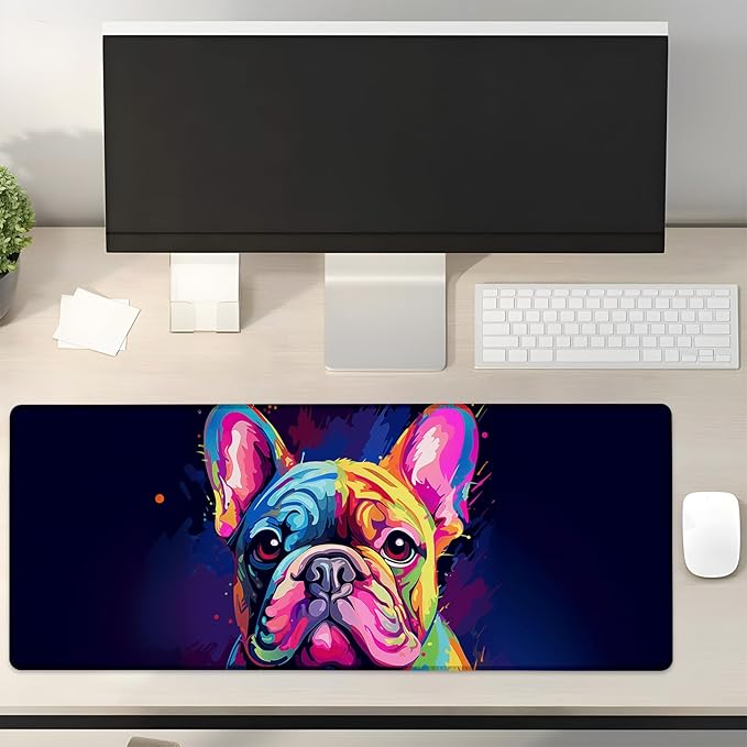 Colorful French Bulldog Gaming Mouse Pad Gifts 31.5" x 11.8", Non-Slip Rubber Base MousePads for Computers Laptop School Office Home Accessories Decor, Mouse Pad, Keyboard Desk Mat