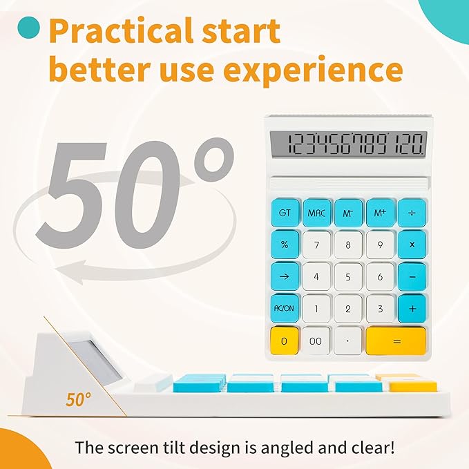 - Comfortable and User-Friendly: Features durable silicone keys, a comfortable ABS plastic body, and a well-organized layout for easy operation. Includes independent memory keys, M+, M-, GT, percentage (%) key, and a delete key (▶). Equipped with non-slip pads to prevent sliding during use, keeping it firmly in place on your desk.