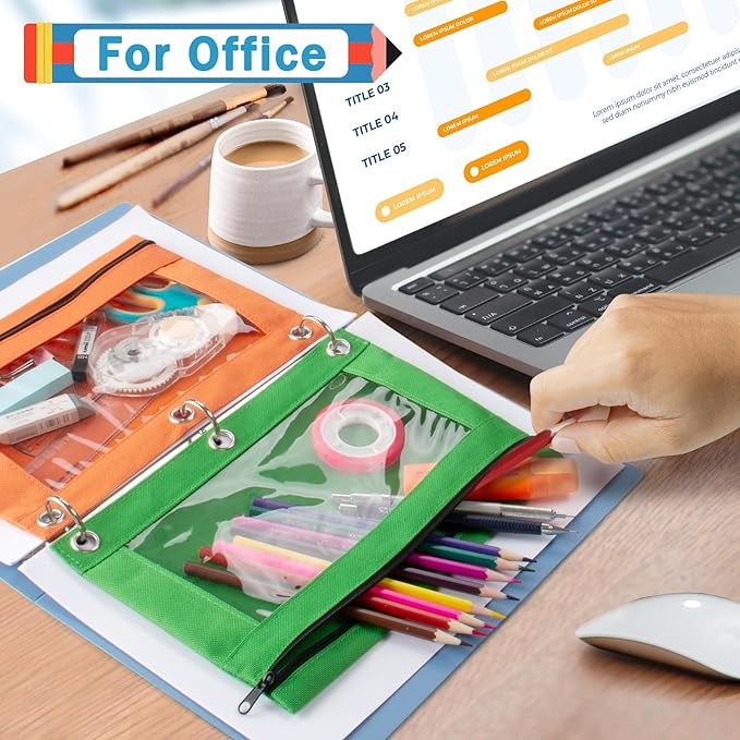 - 48 Pack 3 Ring Binder Pencil Pouches: Precisely calibrated 3-hole binder compatibility (4.3" spacing) ensures seamless insertion into standard binders. Include 6 colors (purple, green, yellow, orange, red, blue), and 8 pcs per color. Perfect for events requiring color-coded organization.