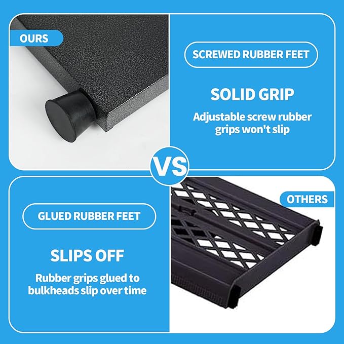 - UNIVERSAL DESIGN: Tool-less installation fits most standard size metal lockers. Adjust the spring-loaded clips to bring the locker shelf to the proper width, then rotate the built-in rubber non-slip feet on both sides for fine-tuning. Secure it with the tension of the locker shelf, it's that simple!