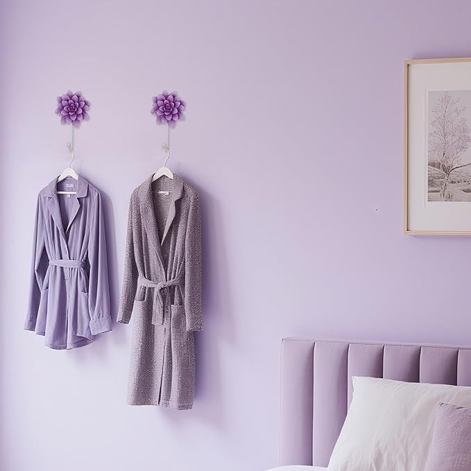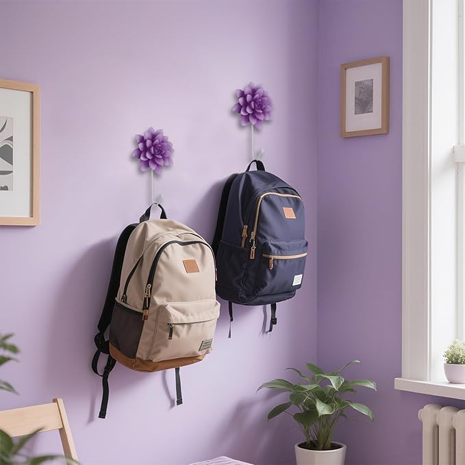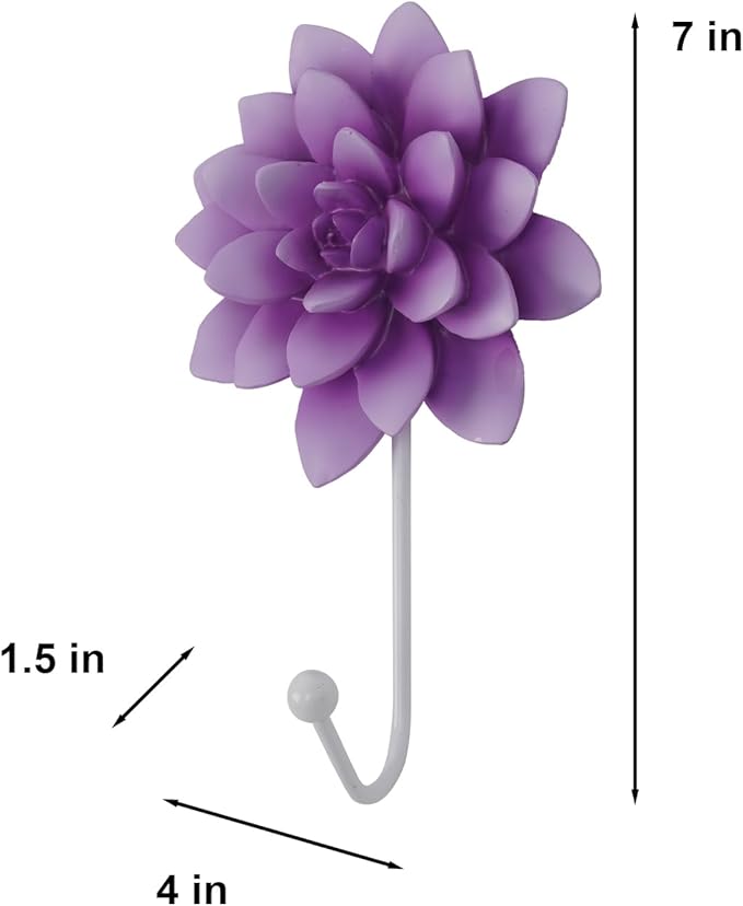 - BEAUTIFUL FLOWER DESIGN: The flower hook made of resin, this wall mounted decorative hooks features a Purple flower shape with iron hook at the bottom. You can put it where you can use it easily, and at the same time it is the decoration that can make your room more beautiful!