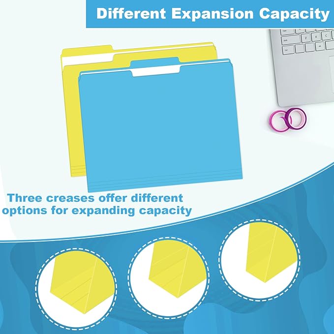 - KEEP YOUR DOCUMENTS TIDY: Organize different types of files by color-coding for quick and easy identification with these 3 tab file folders, helps you avoid filing mistakes, improve efficiency, and create neat, professional custom files.