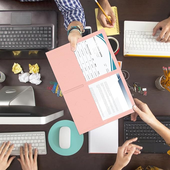 - TWO POCKET FOLDER SET: 50 Pack pink paper folders with 2 inner pocket and 2 business card slots. Deep pocket design can provide secure storage space for papers, files or other important materials