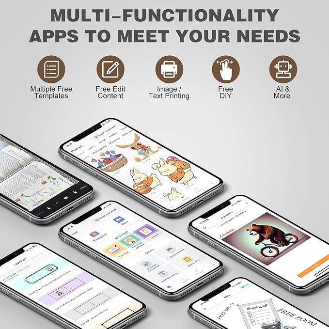 - Multifunctional Mini Printer: Using the mini sticker printer, you can print black and white photos, pictures, study notes, to-do lists, shopping lists, etc. as well as customize bookmarks, labels, magazines and greeting cards, the APP contains a variety of templates and is compatible with Android 4.0 and IOS9.0 or higher