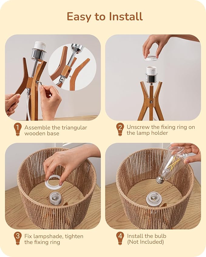 - [Modern Elegance] Crafted with a wooden triangular base and a handmade woven lampshade, this side table lamp adds a touch of refined style to living room, bedroom, nursery, office