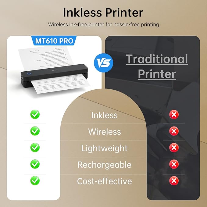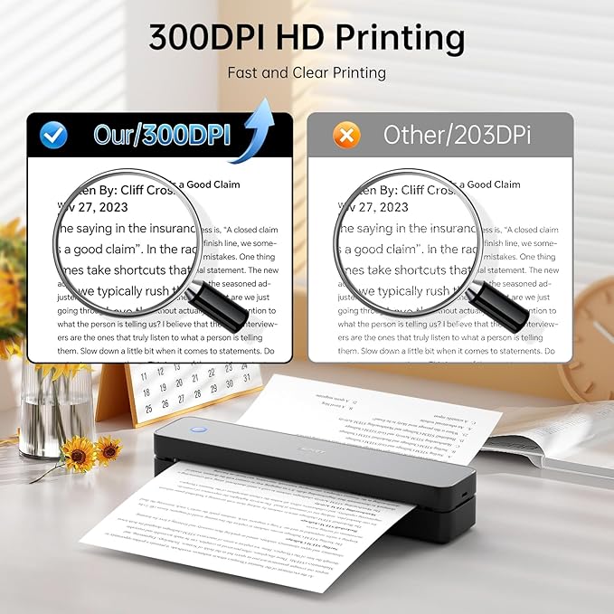 - Advanced Inkless Technology: Enjoy fast, high-definition printing at 300 DPI resolution. This inkless printer requires no ink, toner, or ribbons—producing US letter/A4 prints in just 4-6 seconds(Note: Only thermal paper print is supported). Upgrade now to start a new efficient and convenient printing experience