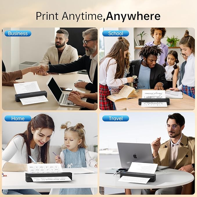 - Large Capacity Battery: This portable thermal printer equipped with a 2000mAh rechargeable battery, supports up to 4 hours of continuous printing or 240 pages on a single charge, making it perfect for use at home or even in your car. Reliable, convenient, and always ready when you need it