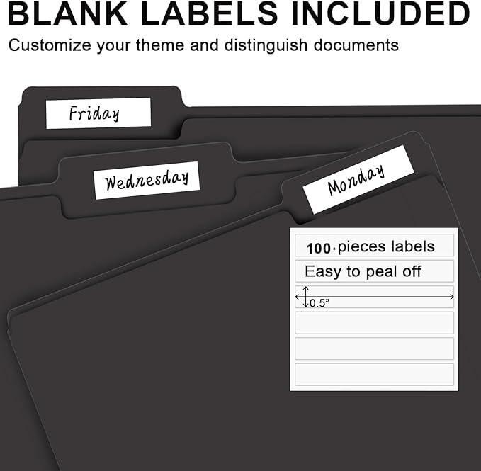 - PACKAGE INCLUDED: This bulk pack includes 100 letter size file folders (50 of each position) and 100 blank labels, idea for any home, office, or school project, providing you with plenty of storage space for all of your important documents