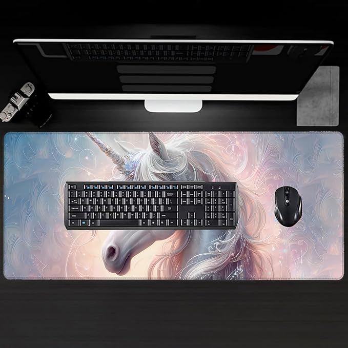 Elegant Unicorn Large Gaming Desk Mat,Rubber Non-Slip Mystical Fantasy Mouse Pad,31.5x11.8x0.12in Extended Animal Mousepad,Game Lover Mice Pads Gifts,Office Home Deskmat Decor