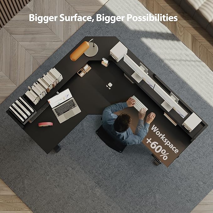 - 【Ergonomic L Shape Design】The L shaped design maximizes workspace with ergonomic support, reducing back and neck strain during long-term use. Ideal for multitasking and optimizing work areas.