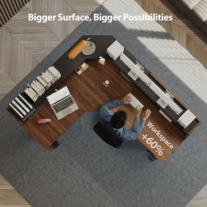 - 【Ergonomic L Shape Design】The L shaped design maximizes workspace with ergonomic support, reducing back and neck strain during long-term use. Ideal for multitasking and optimizing work areas.