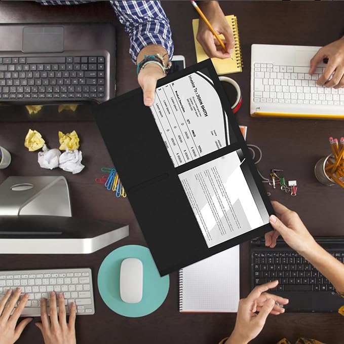 - TWO POCKET FOLDER SET: 75 Pack black paper folders with 2 inner pocket and 2 business card slots. Deep pocket design can provide secure storage space for papers, files or other important materials