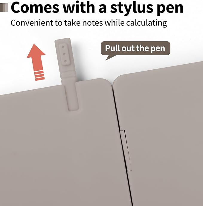 - 【Lightweight and Portable】This is a lightweight calculator with a writing pad and foldable design, and it weighs only 3.73 ounces. It is portable that you can carry it anywhere and it can be removed and used immediately when needed.
