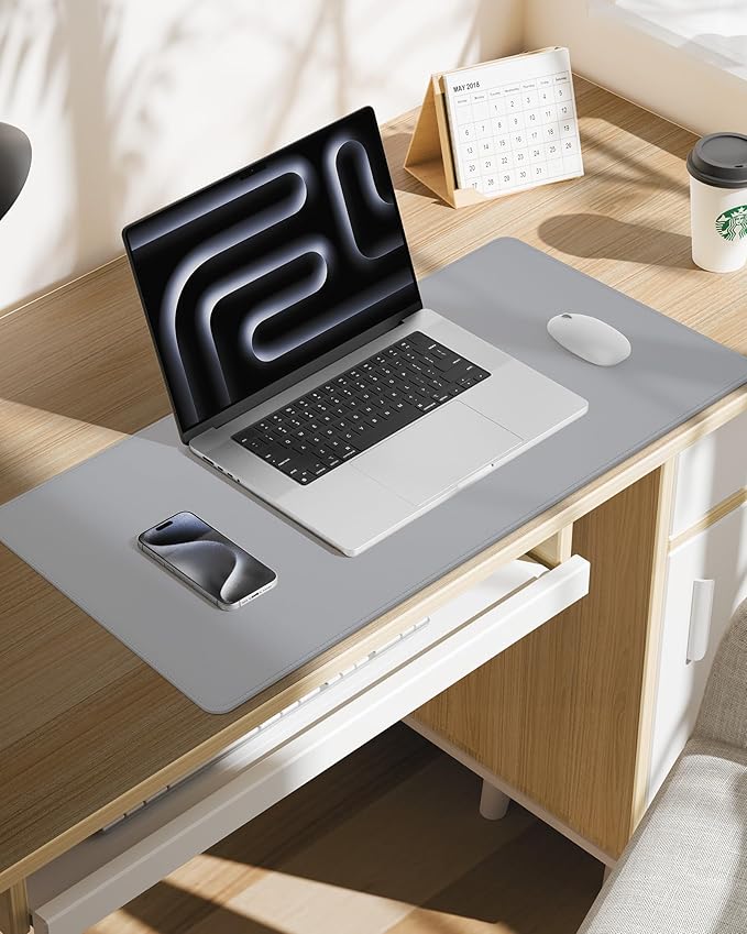 Desk Pad Mat - Leather Desk Pad Protector for Office and Home - Desk Organization and Accessories - Ideal for Large Mouse Pad and Desk Mats on Top of Desks(Light Grey,31.5" x 15.7")