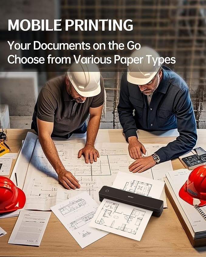- ✅ Ultra Light Travel Printer– At just 1.1lb (526g) and 1.6 inches thick, this portable thermal printer fits easily into your backpack or work bag. Whether you're on a business trip, campus, café, or coworking space, print contracts, lecture notes, or documents on the go—no desk needed!