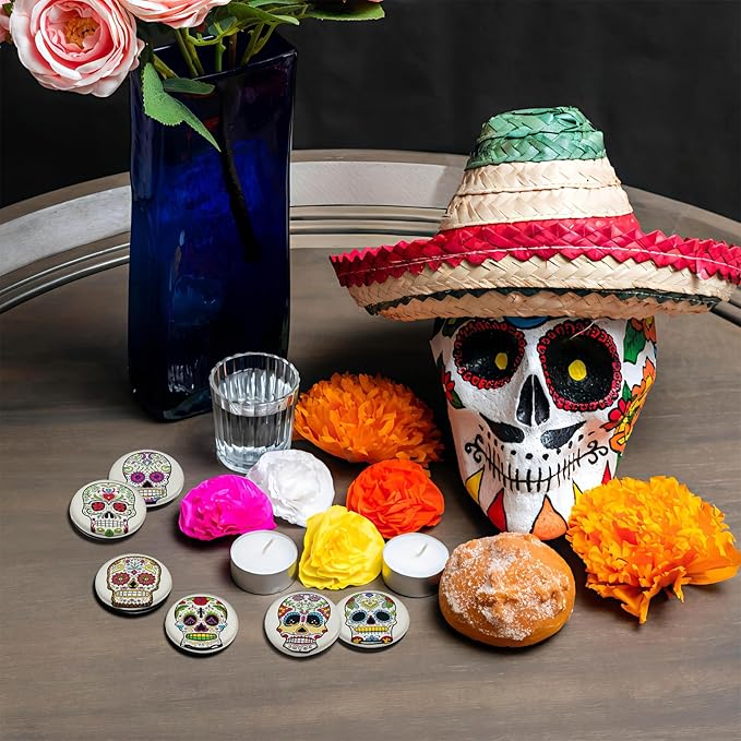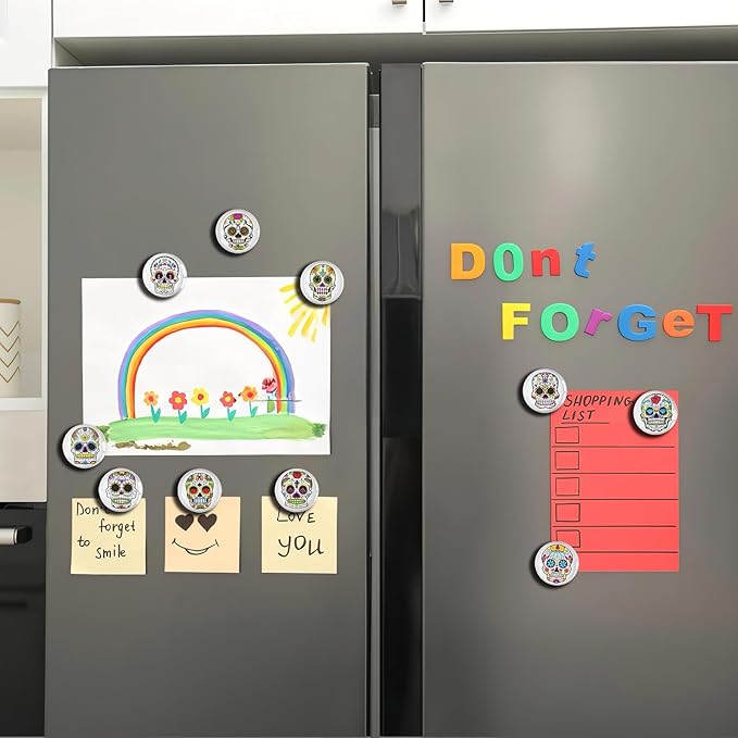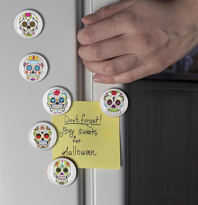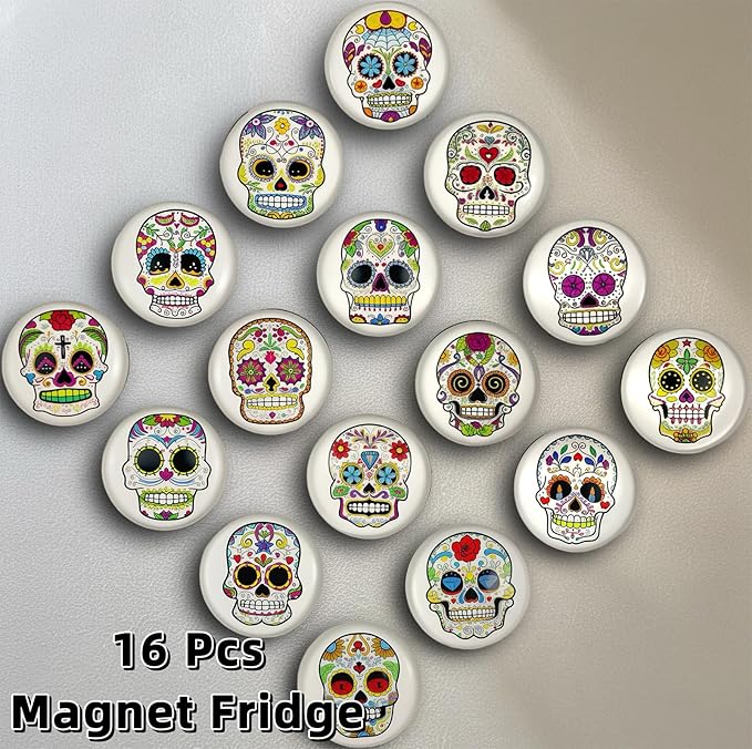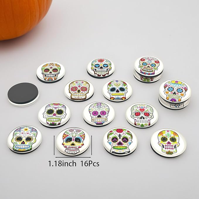 16psc Halloween Horror Fridge Magnets, Cute Fun Crystal Glass Strong Refrigerator Magnets for Locker Whiteboard Office (Sugar Skull)