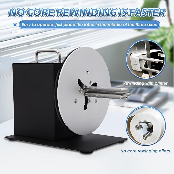 - ADJUSTABLE CORE HOLDERS: 1" - 3" (27-76 mm)core size, not limited to only a few roll sizes, as long as your label core is in the range of 1-4 inches, it can be applied, also works with wind labels without core rewinding, just place the label in the middle of the three axes
